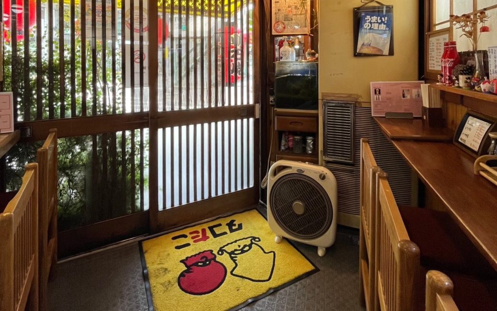 Upon entering through the curtain, you are greeted by a cute takoyaki mascot character